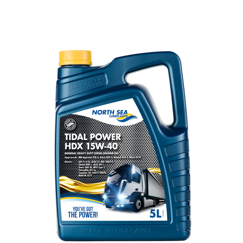 Το TIDAL POWER HDX 15W-40 είναι ένα εξαιρετικά υψηλής απόδοσης γενικό λάδι κινητήρα σχεδιασμένο για κινητήρες ντίζελ υψηλής φόρτωσης σε ελαφρά και βαρέα επαγγελματικά οχήματα που λειτουργούν κάτω από σοβαρές συνθήκες λειτουργίας καθ 'όλη τη διάρκεια του έτους για χρήση σε Euro-3, Euro-4 και Euro-5 κινητήρες εξοπλισμένοι με EGR και / ή SCR. Αυτό το προϊόν δεν είναι κατάλληλο για οχήματα εξοπλισμένα με φίλτρα DPF.