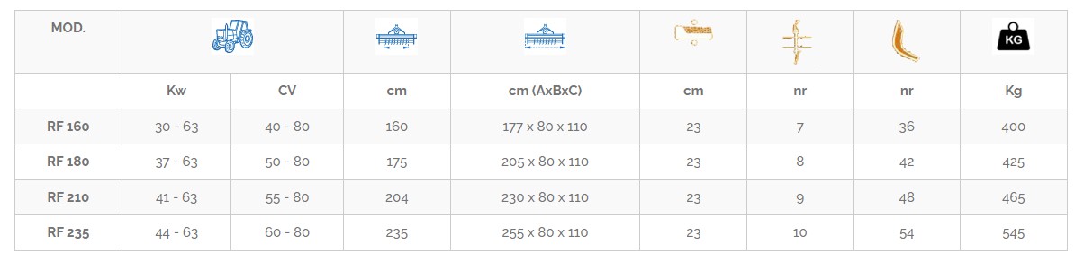 Η φρέζα RF (160, 185, 210, 235) είναι ιδανική για μικρού και μεσαίου μεγέθους αγροτικές εκτάσεις και τρακτέρ ΄έως 80 Hp.