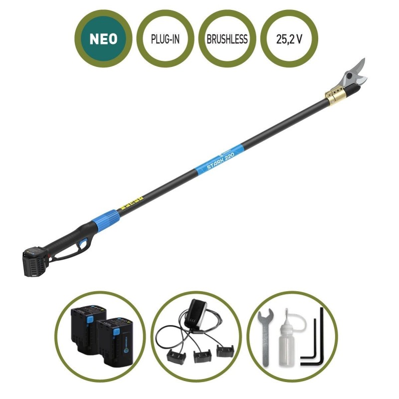 Ελαφρύ και πολύ εύχρηστο, το κονταροψάλιδο της σειράς Stark με μπαταρία Li-Ion έχει δυνατότητα κοπής διαμέτρου έως 38mm (αναλόγως της σκληρότητας του ξύλου)