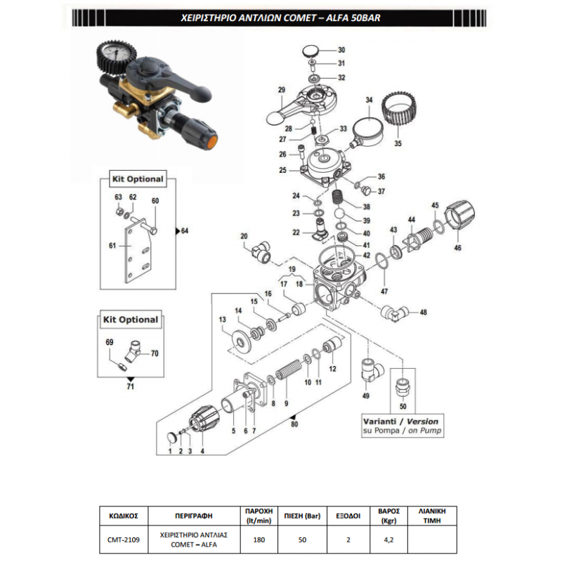 - Πίεση: 50 bar