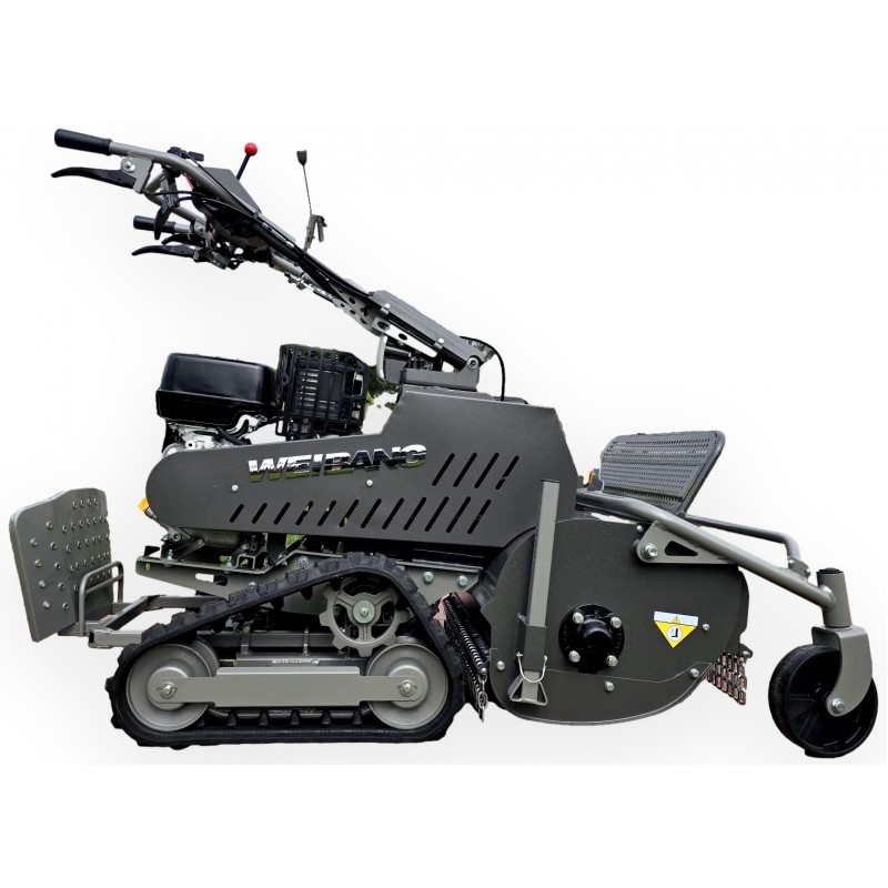 Το χλοοκοπτικό Weibang διαθέτει ερπυστριοφόρο σύστημα και ανθεκτικό και στιβαρό σχέδιο για μακροχρόνια χρήση. Είναι ιδανικό εργαλείο για όσους αναζητούν εξοπλισμό για να εργαστούν σε μεγάλες εκτάσεις με δύσκολο έδαφος και απαιτητική βλάστηση. Ο πίνακας ελέγχου είναι εξοπλισμένος με πολλαπλές λαβές ελέγχου που επιτρέπουν στον χρήστη να ελέγχει πλήρως το χλοοκοπτικό. Αυτές οι λαβές περιλαμβάνουν ρύθμιση του γκαζιού του κινητήρα, αλλαγή ταχύτητας κιβωτίου ταχυτήτων και ενεργοποίηση/απενεργοποίηση των πτερυγίων.