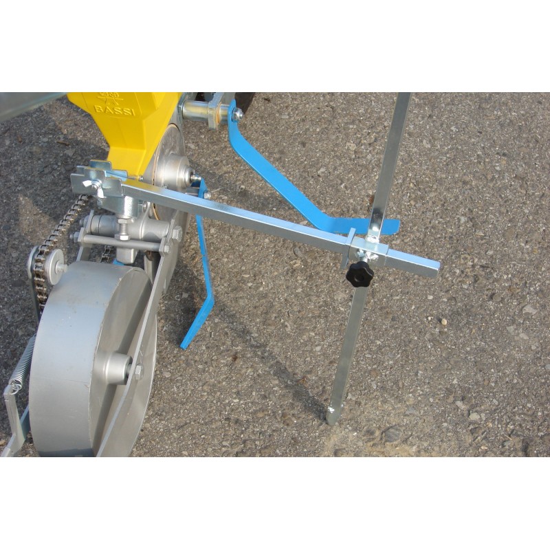 Ο σπορέας χειρός BASSI είναι μια μηχανή μεγάλης ακριβείας που εξοπλίζεται με ένα διανομέα σπόρου ο οποίος αποτελείται από έναν κυψελώδη δίσκο, ο οποίος εγγυάται την πτώση ενός σπόρου κάθε φορά και κατασκευάζεται σύμφωνα με τις ανάγκες των πελατών. Έχει ως σκοπό να σπείρει όλους τους τύπους λαχανικών ντυμένων ή γυμνών σπόρων, δημητριακά, όσπρια και ιατρικά βότανα. Ο διανομέας σπόρου κινείται με την οπίσθια ρόδα, έχοντας ένα γρανάζι που μεταδίδει την κίνηση με μια αλυσίδα σε ένα σετ γραναζιών έχοντας την δυνατότητα να αλλάξουμε την απόσταση των σπόρων. Εκδόσεις: στοιχείο σποράς με μια καρίνα και στοιχείο σποράς με διπλή καρίνα