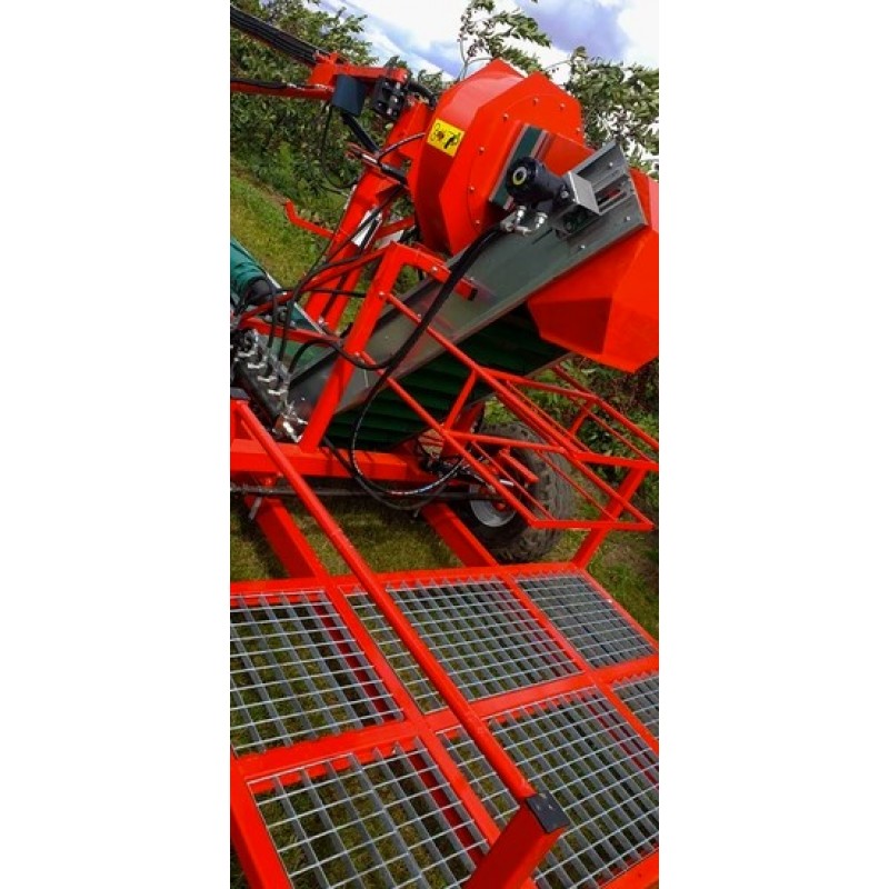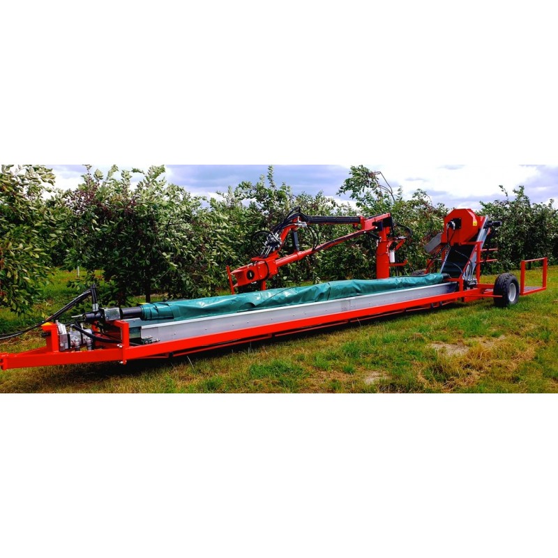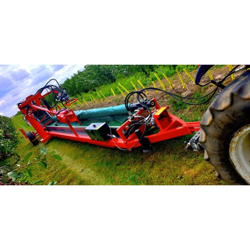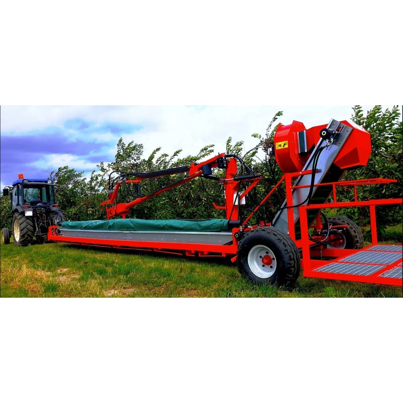 Το μηχάνημα περισυλλογής καρπών είναι παρελκόμενο του γεωργικού ελκυστήρα και μπορεί να εργασθεί πίσω από έναν dονητή συλλογής .