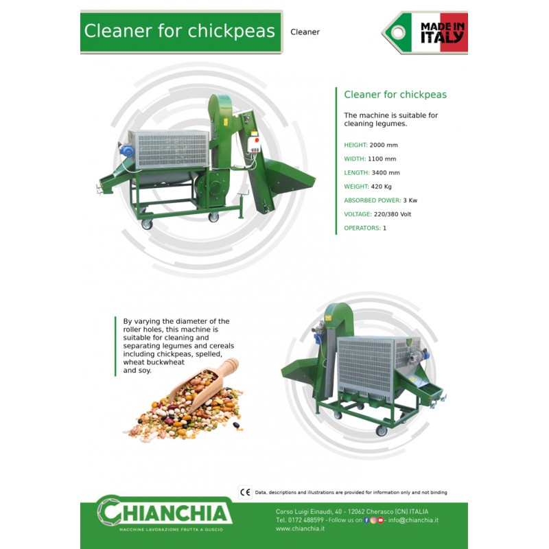 Μηχανή κατάλληλη για το διαχωρισμό των ρεβιθιών από τις ελαφριές ακαθαρσίες και το διαχωρισμό των σπασμένων ρεβιθιών από ολόκληρα ρεβίθια.