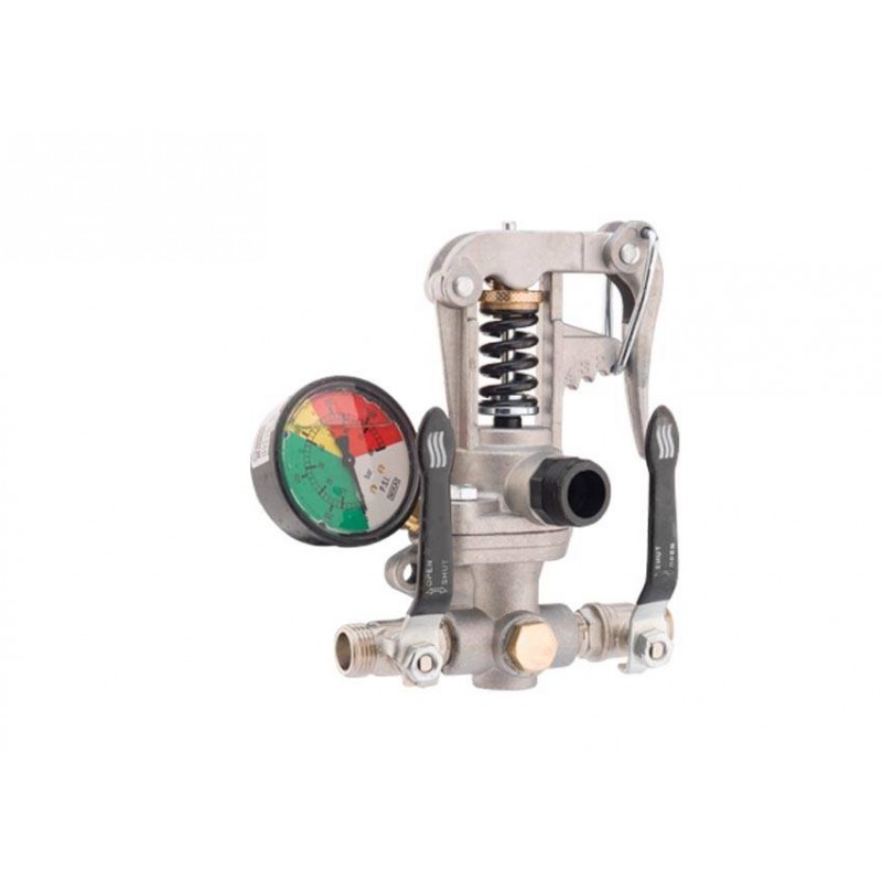 Μονάδα ελέγχου με βαλβίδα ρύθμισης πίεσης εργασίας, μετρητή πίεσης λουτρού γλυκερίνης με έγχρωμο επιλογέα.