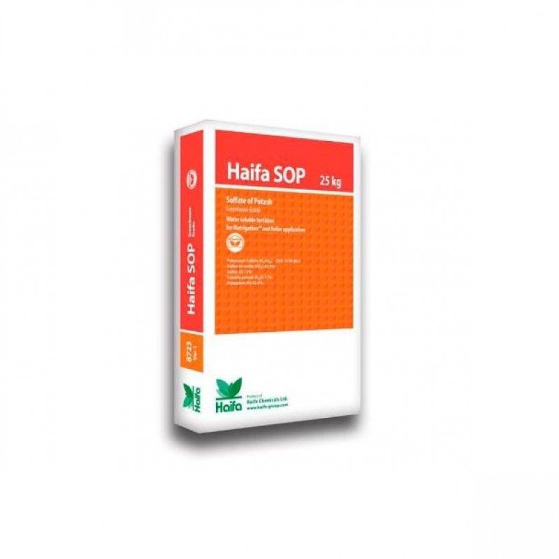 Πρόκειται για λίπασμα θειικού καλίου, το οποίο συνιστάται ως πηγή καλίου, είτε όταν πρέπει να μειωθεί το pH του εδάφους, είτε όταν υπάρχει ανάγκη θείου, είτε όταν πρέπει να αποφεύγεται η αζωτούχος λίπανση (πχ. στο τέλος της καλλιεργητικής περιόδου). Το Haifa SOP™ GG συνιστάται για Nutrigation™, διαφυλλική θρέψη όλων των καλλιεργειών και για την παραγωγή υγρών λιπασμάτων. Το Haifa SOP™ Agri Grade (κοκκώδες) συνίσταται για απευθείας εφαρμογές στο έδαφος και για την παραγωγή μειγμάτων κοκκωδών λιπασμάτων.