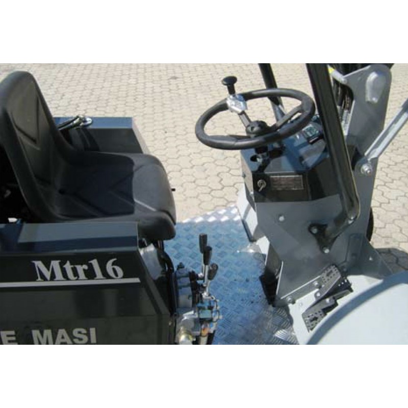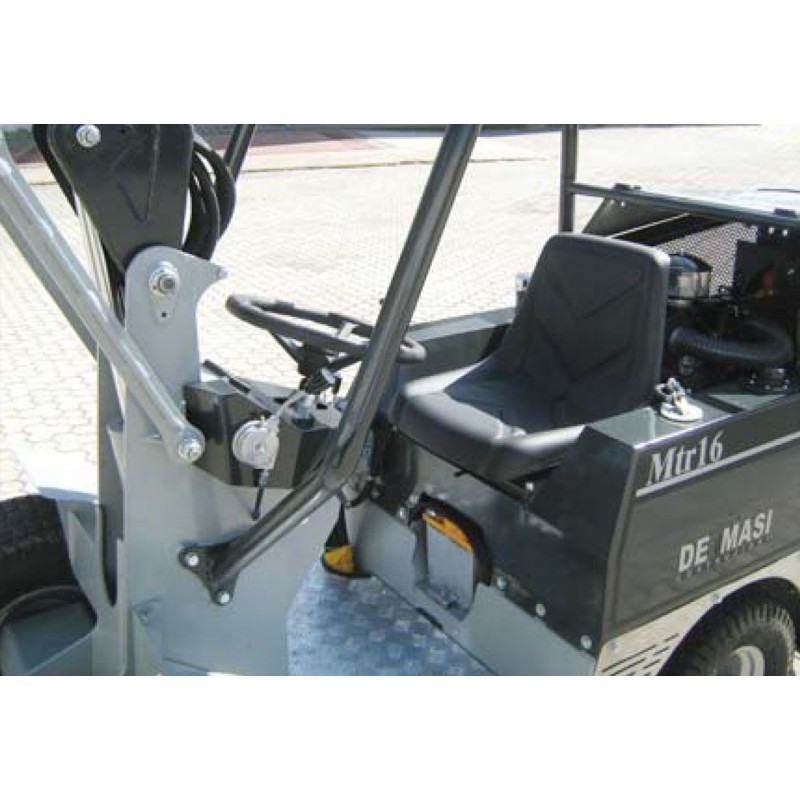 Υδροστατική μετάδοση με δύο κινητήριους τροχούς, κλίση και πίσω άξονα διεύθυνσης. Χτισμένο σε χαλύβδινο πλαίσιο μονόκωτου κατάλληλου πάχους. Μπροστινός βραχίονας με παραλληλισμούς ισοπέδωσης και φλάντζα σύνδεσης άκρου. Εργονομική θέση οδήγησης με εντολές για απλή και άμεση χρήση, εμπρός-πίσω χειριστήρια με αναλογικό ποδόπληκτρο, που σας επιτρέπει να έχετε ελεύθερα τα χέρια σας.