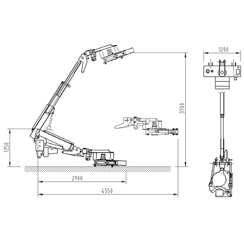 μέγιστο ύψος εργασίας 310 cm και μέγιστο άνοιγμα βραχιόνων 350 cm.